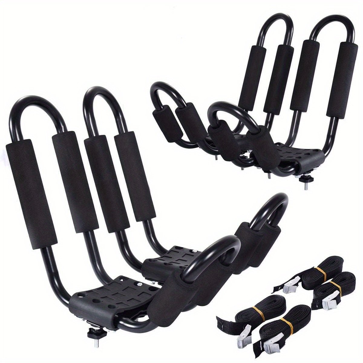 1 Pair Universal J-Bar Kayak Carrier 220LBS Load Heavy Duty Canoe Car Top Mount Carrier Roof Rack with 2Pcs Tie Down Straps