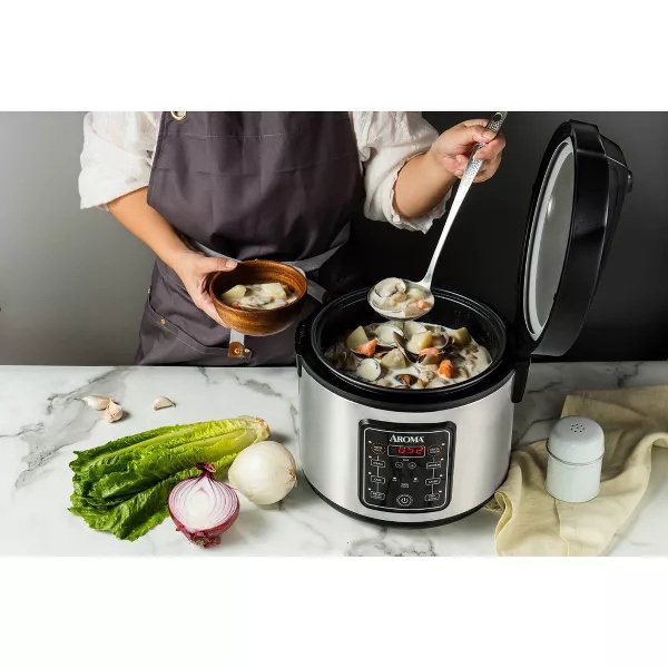 • Stainless steel rice cooker and steamer is ideal for roasts, soups, jambalaya, and much more
