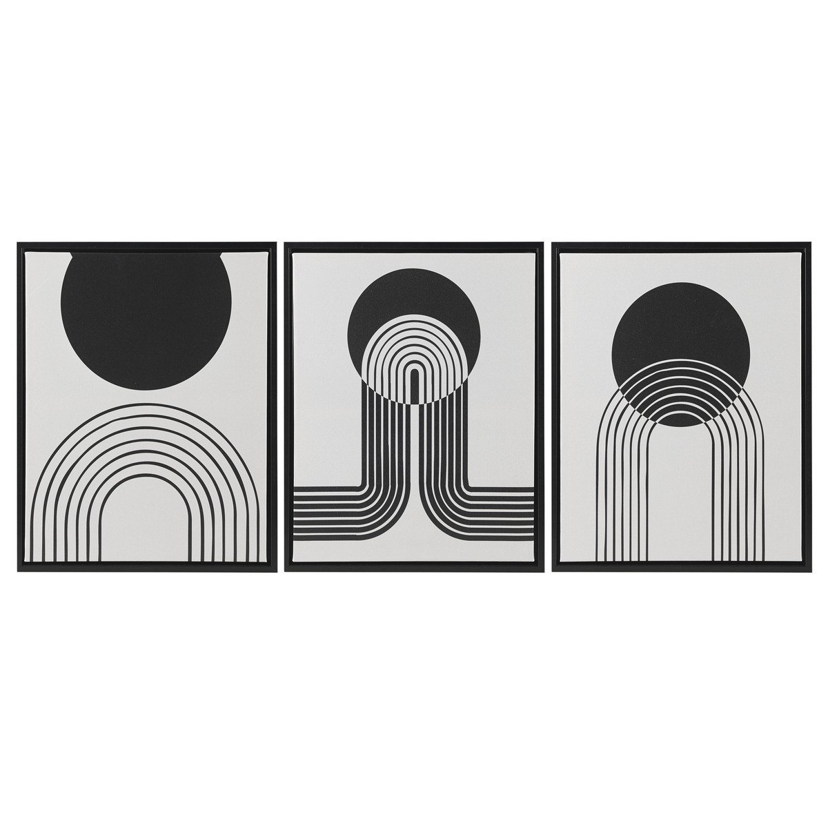 Bring a bold modern touch to your home with the Urban Habitat Cosmic Curl 3-piece Framed Canvas Wall Art Set by Artist 9 Lives Studio. Each wall art piece features different curved geometric designs, in black and taupe, to create a unique and coordinated contemporary look. A black frame lines each printed canvas to complement the artwork. 2 D-rings are finished on the reverse of each piece make this canvas set easy to hang together or separately, giving your living room a fresh modern update. Comes as a three piece set, each piece measures 16.83x20.83" and is spot clean only.