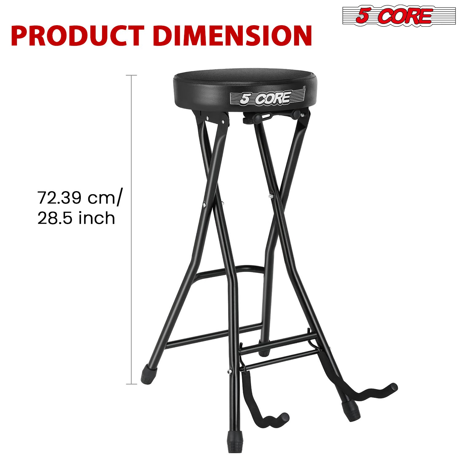 Home > 5 Core Guitar Stool • w Comfortable Padded Seat • Foot Rest • Guitar Holder w 300 Lbs Capacity - GSTOOL BLK