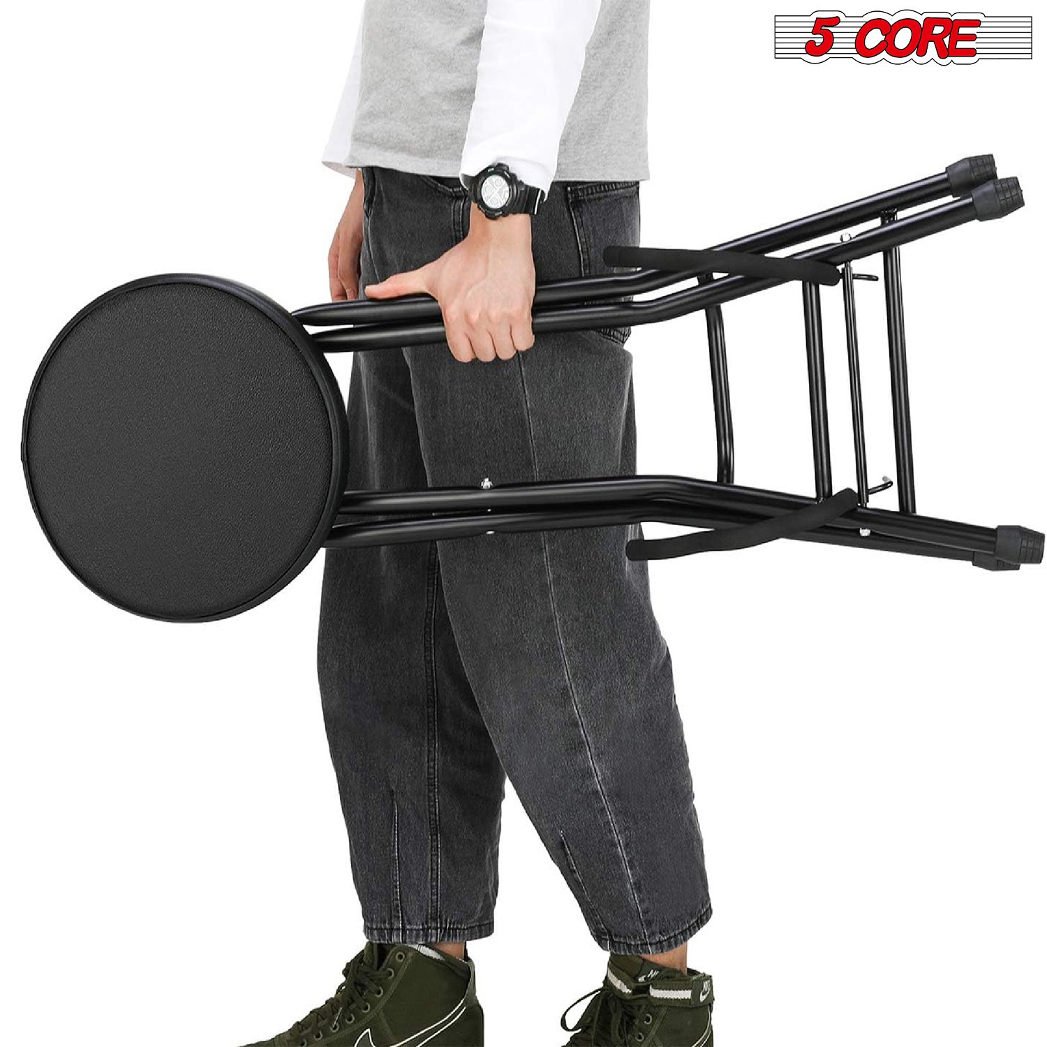 3.Anti-Slip Design: The 5 Core guitar chair has rubber sleeves that keep your guitar seat from moving when you play. Its strong steel frame with an X-style design makes it really steady.