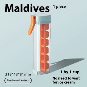 Ice Cube Mold Household Ice Maker Food Grade Press Ice Tray Ice Cube Maker Ice Tray Mold With Storage Box Kitchen Gadget (Option: Maldives Color-1PC)