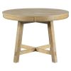 Adjustable dining table lengthTaking into account the use of different scenarios, the table adopts a flexible design and the length can be adjusted. The round table's planked top is eased along the edges, then insert a leaf, and it can extend to accommodate additional guests. Table expands from 42'' to 56'', seats up to 6.DetailsTable42~58'' x 42''W x 30''HWeight Capacity of Table300 LBSMaterial of TabletopMDF with Oak VeneerMaterial of Table Frame/Table LegsPoplar WoodFinishVeneer OakPackage Number1Assembly Required20 minAdditional Tools RequiredAll Tools IncludedMaintenance & NoticeAbout FinishLiquids should be immediately blotted with a damp cloth. Do not use surface cleaners that could remove the finish.About HardwareHardware may loosen over time; periodically check to make sure all connections are tight.About FastenersDon't over-tighten fasteners, as this may cause distortion or breakage.About ColorReal Product's Color may be a little different from the image due to the lighting or monitor's display.About SizeManual measurement has been used, there may be some reasonable error.Elegant round dining table: With a round tabletop and X-shaped base, this table represents an elegant and temperament atmosphere. Moreover, the adjustable dining table length makes this dining set suitable for any size room.Stable & Solid Structure: This dining table set is expertly crafted of MDF and rubber wood. The tabletop is finished with oak wood veneers. The use of veneers results in high-quality furniture that has flawless surfaces and consistent color tones that will not be subject to cracking.Adjustable dining table length: Taking into account the use of different scenarios, the table adopts a flexible design and the length can be adjusted. The round table's planked top is eased along the edges, then insert a leaf, and it can extend to accommodate additional guests. Table expands from 42''to 56'', seats up to 6.Exquisite Craftsmanship: The dining table with an X-shaped base and keyed-through tenons, and small wooden blocks on the tabletop edge make this dining table more stable and durable. The graceful natural wood texture on the tabletop is suitable for a farmhouse or modern-style dining room.Install Instructions & Weight Capacity: Full assembly required. Install instruction manual will be shipped with the products, and users can install all of the parts of this dining table without any errors as long as they follow the logical and clear instructions. The installation process would be more smooth if users prepare the drill themselves. The load-bearing capacity of the tabletop is 3 lbs.
