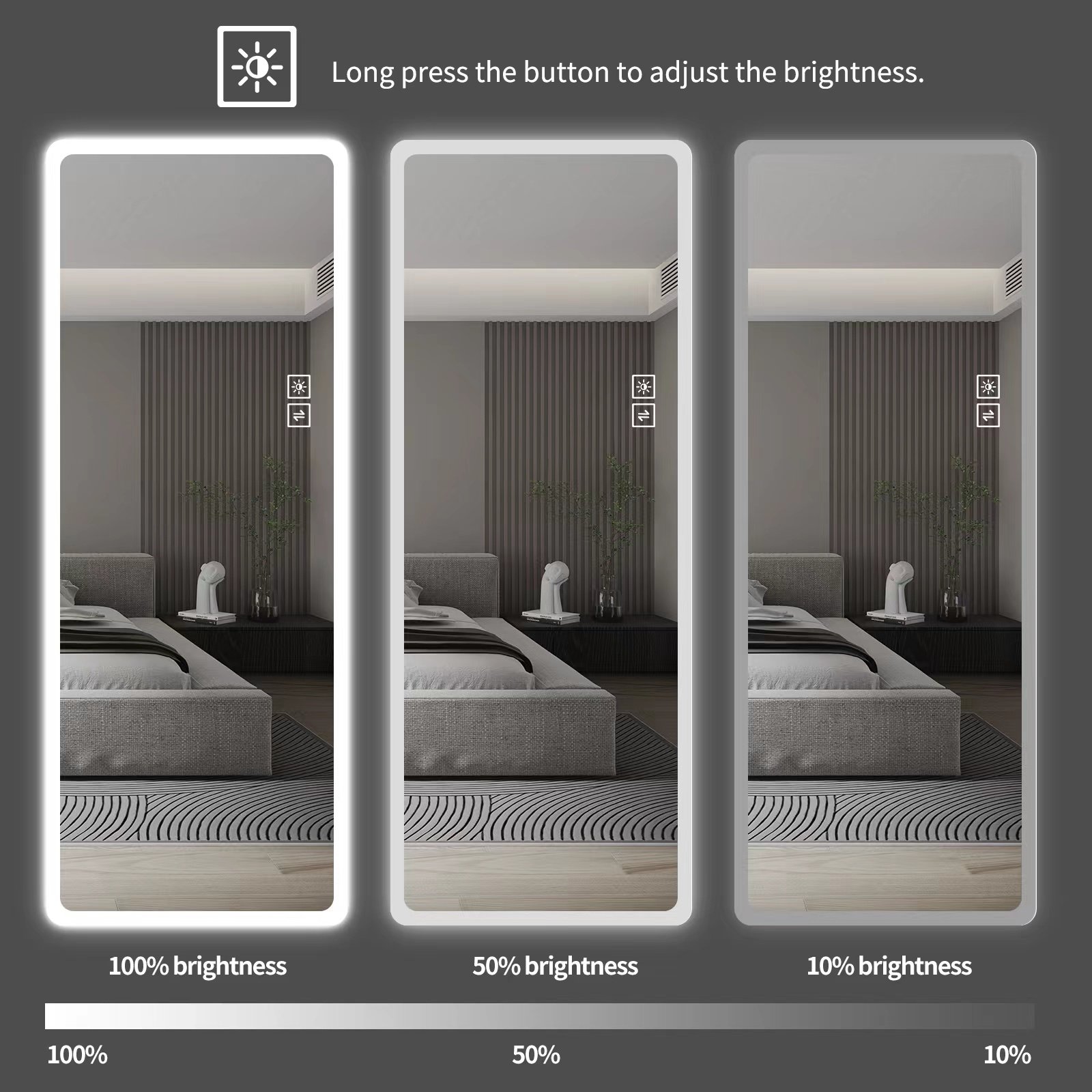 Two types of lights are adjustableWhether you're looking for a soft glow for a relaxing bath or a bright light for meticulous beauty, the stepless dimming feature offers unparalleled flexibility. Enhance your bathroom experience with custom lighting to suit your mood and needs.