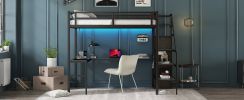 Loft Bed with USB and LED - The full size bed's desk comes with a USB charging station for charging electronics that is convenience to your daily life.The LED light strip adds a sense of ambiance to your room while making it easy for you to wake up at night.