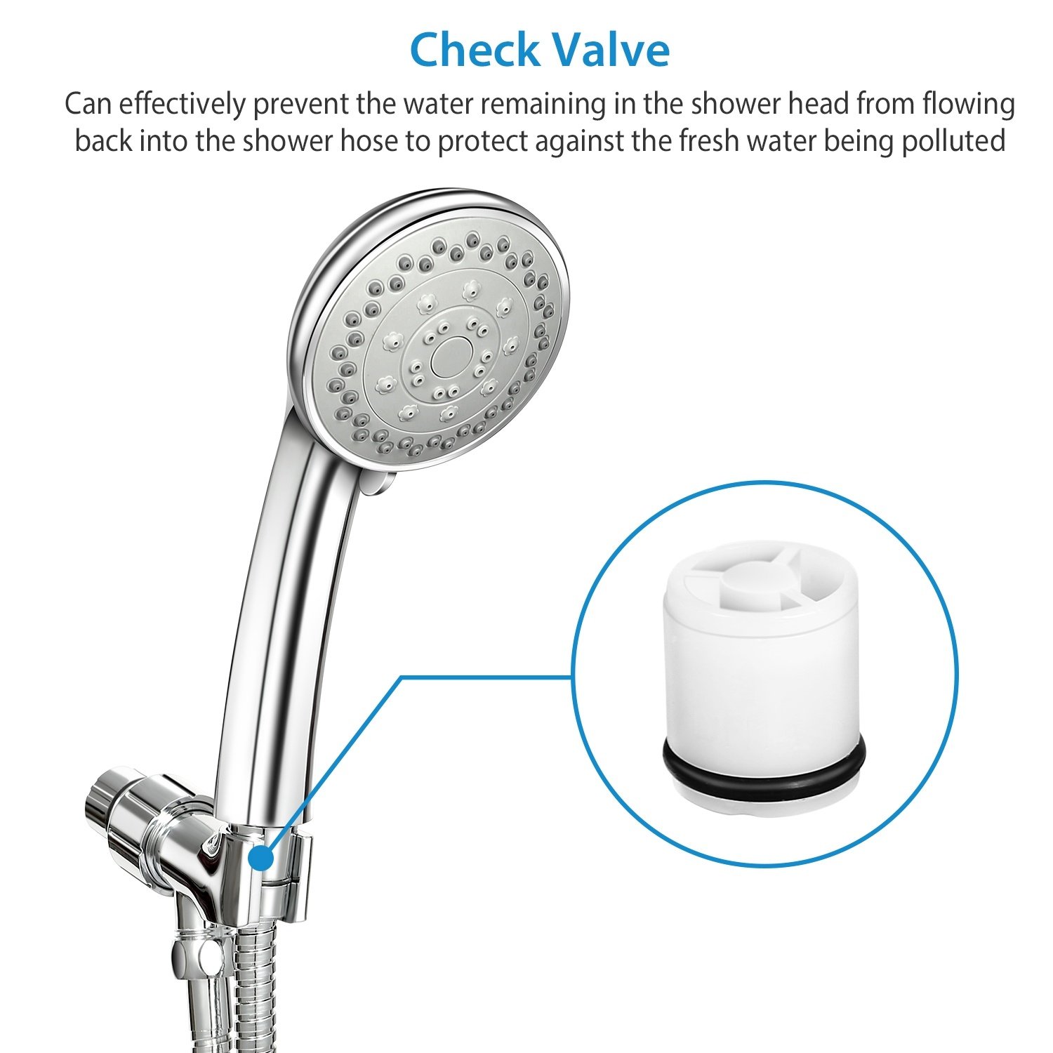 **CHECK VALVE*:Can effectively prevent the water remaining in the shower head from flowing back into the shower hose to protect against the fresh water being polluted.