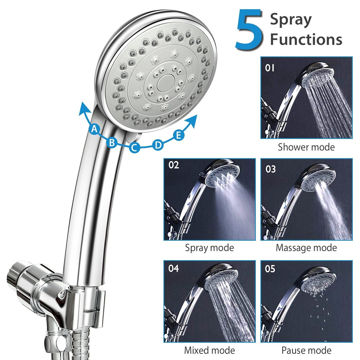 1.Features 5 spray settings (shower mode, massage mode, spa spry mode, mixed power mode and water pause mode)