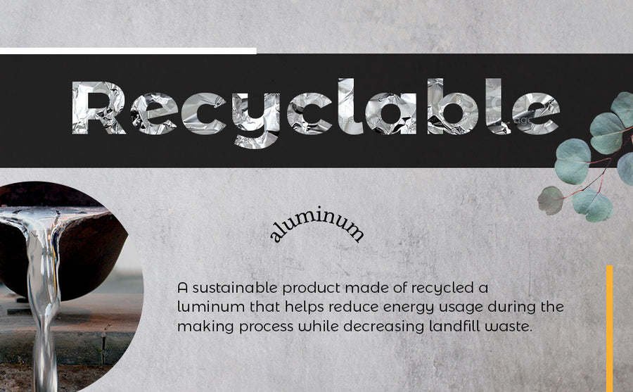 <p>ECO-FRIENDLY.<span> </span><meta charset="utf-8"><span data-mce-fragment="1"> A sustainable product made of recycled aluminum helps reduce energy usage during the making process while decreasing landfill waste.</span></p>