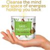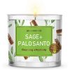 14 OZ AROMATHERAPY WHITE SAGE & PALO SANTO HEALING CANDLE − Made with Natural Soy Wax (SGS and MSDS Report available - No Petroleum or Paraffin Wax). The Latin word for sage salvia stems form the word heal. It's devoted to clearing, protection, and blessings. This blend of earthy sage creates a natural harmony in the home and body.