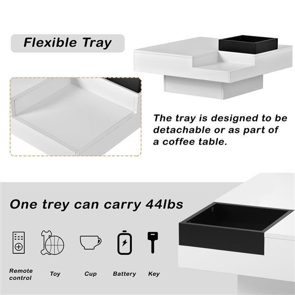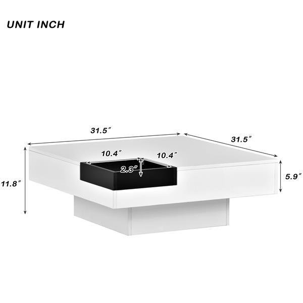 Home > Modern Minimalist Design 31.5*31.5in Square Coffee Table with Detachable Tray and Plug-in 16-color LED Strip Lights Remote Control for Living Room