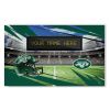 Features a football stadium, helmet and your favorite team's logo with a scoreboard ready for your personalization