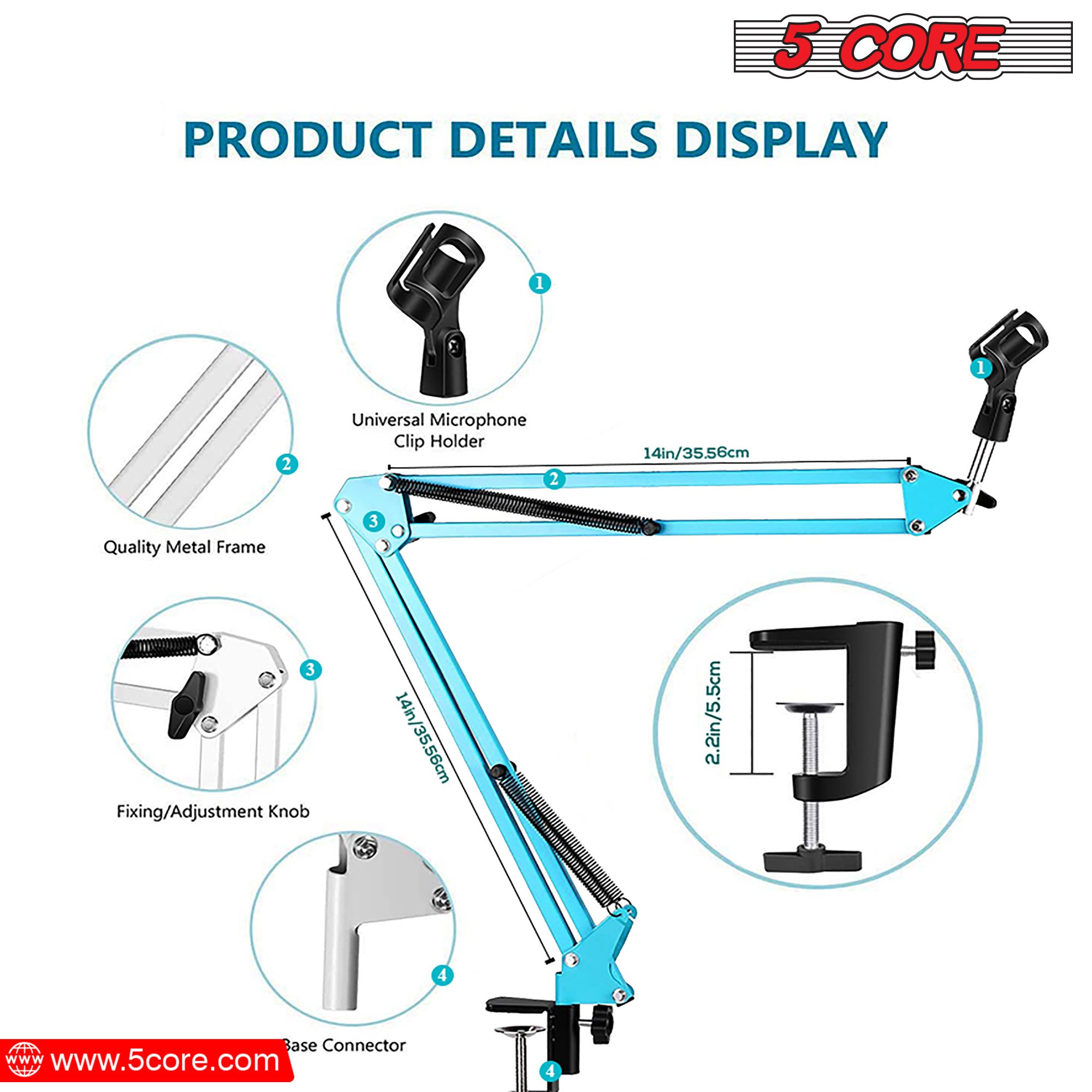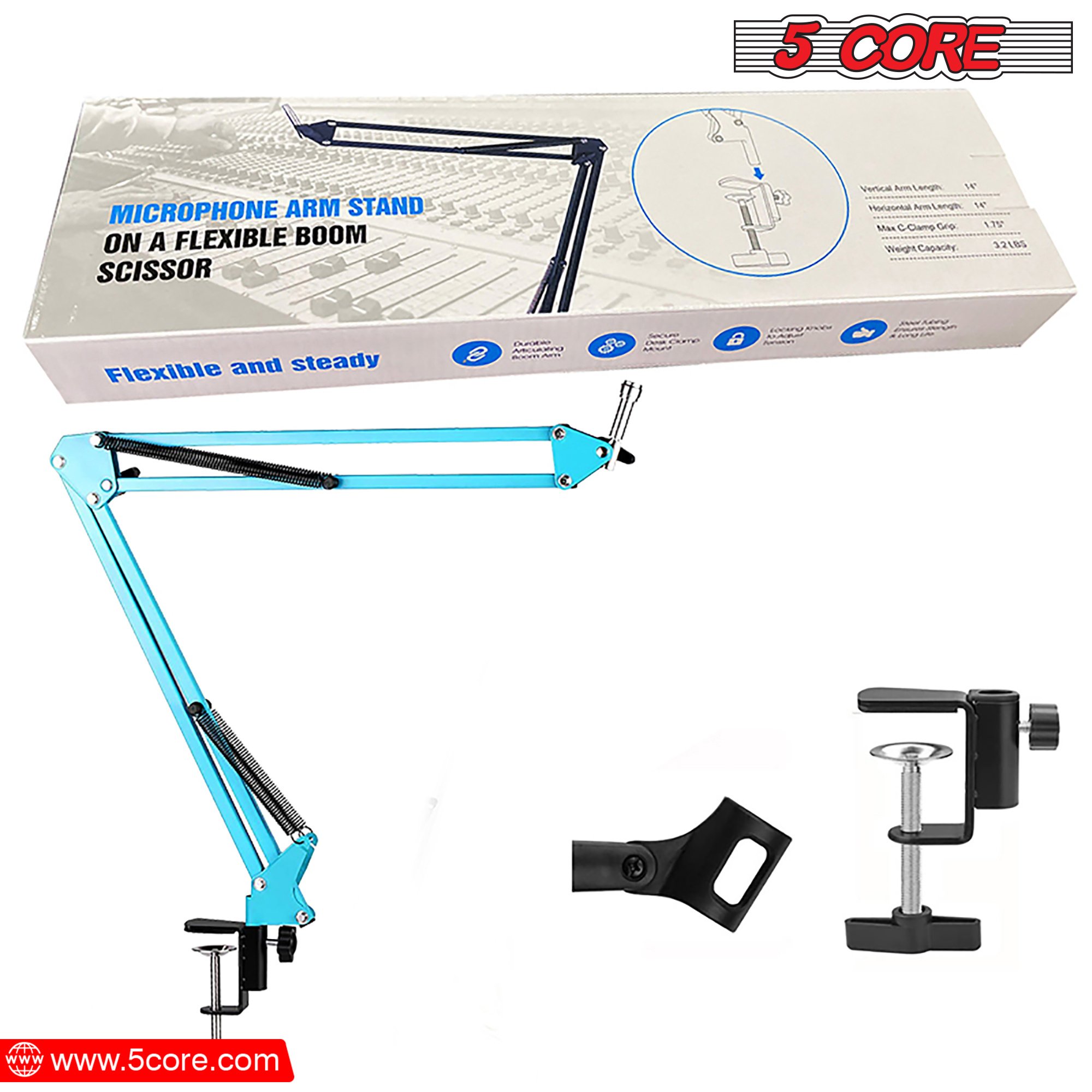 5 Core Mic Arm Adjustable Boom Microphone Stand Desk Mount Heavy Duty Brazo Para Microfono for Condenser Dynamic Mics - MS ARM BLU