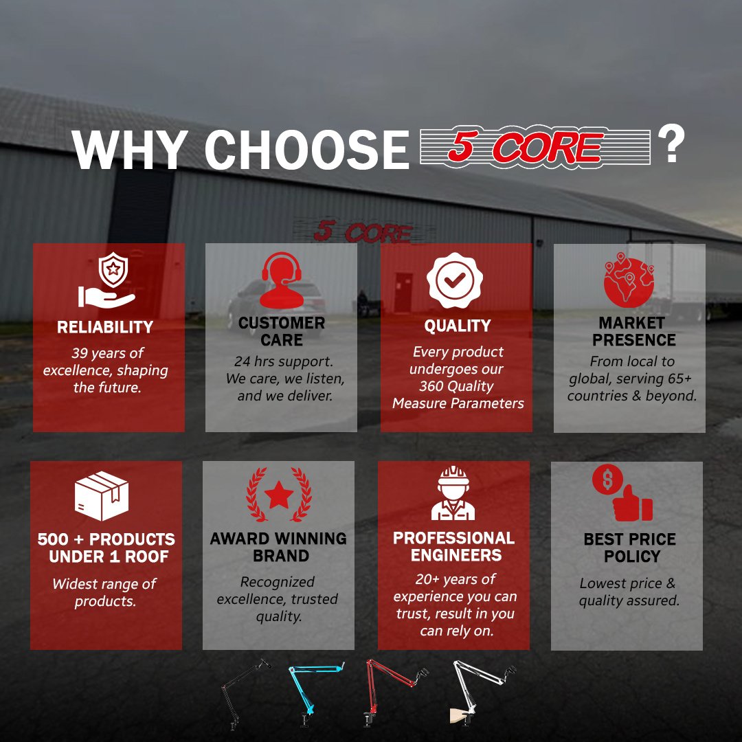 5 Core, ISO Certified headquartered in California, warehouse in Ohio, USA. Offering 600+ products since 1984. Tested and Certified Products, ensuring highest quality and reliability.