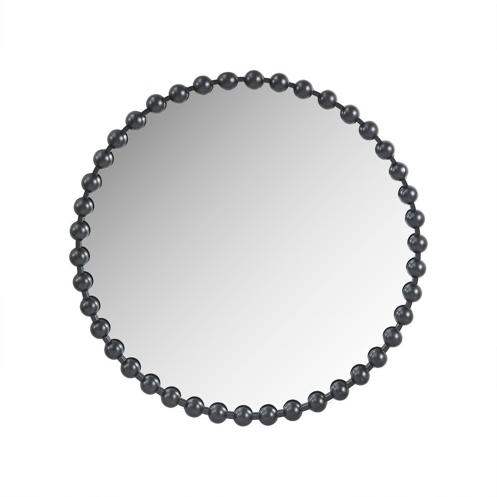 Reimagine your space with our Madison Park Signature Marlowe Beaded Round Wall Mirror. This round mirror features a stylized spherical iron frame finished with matte black foil, creating a bold and glamorous allure. The keyhole hook fixture on the back of the mirror allows for effortless hanging on your wall. Measuring 27x27" easily incorporate this mirror into any small space, bedroom, or entryway - for the perfect combination of modern glam and flair. Wipe clean with damp cloth and handle with care.