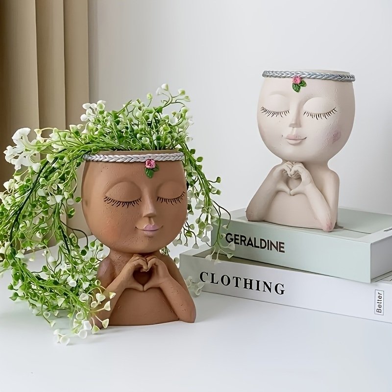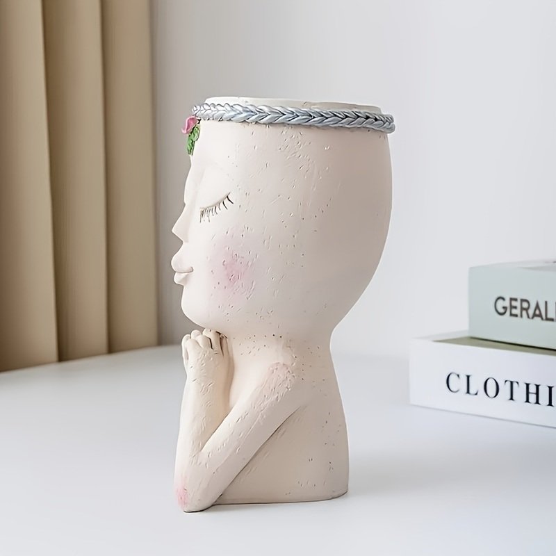 1pc Figure Flower Pot; Women Face Statue Vase Planter Ornaments; For Indoor Outdoor Home Decor Garden Patio (4.7*7.3*3.4in)