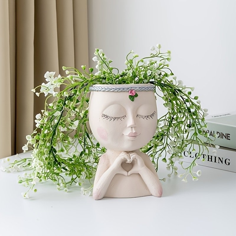 Home > 1pc Figure Flower Pot; Women Face Statue Vase Planter Ornaments; For Indoor Outdoor Home Decor Garden Patio (4.7*7.3*3.4in)