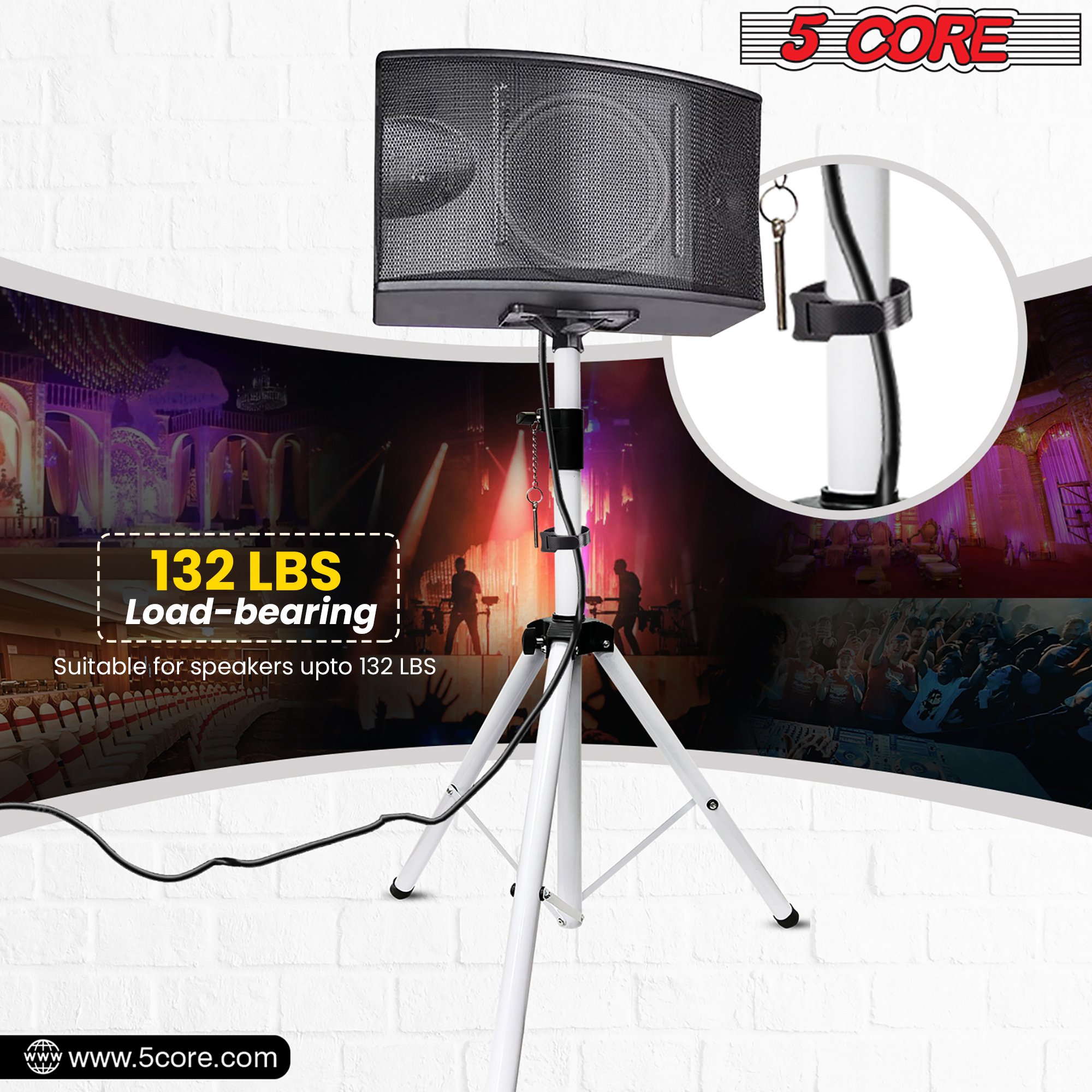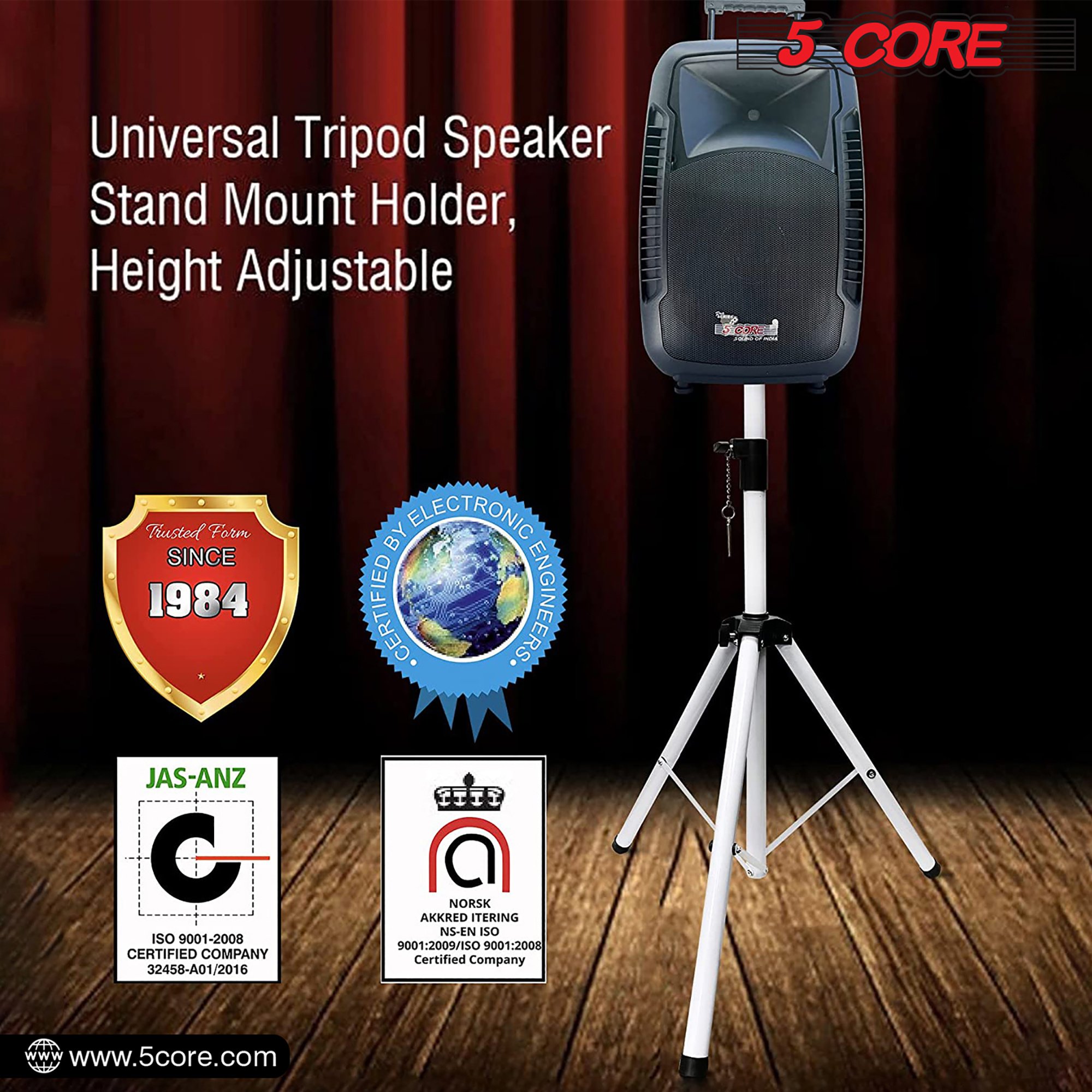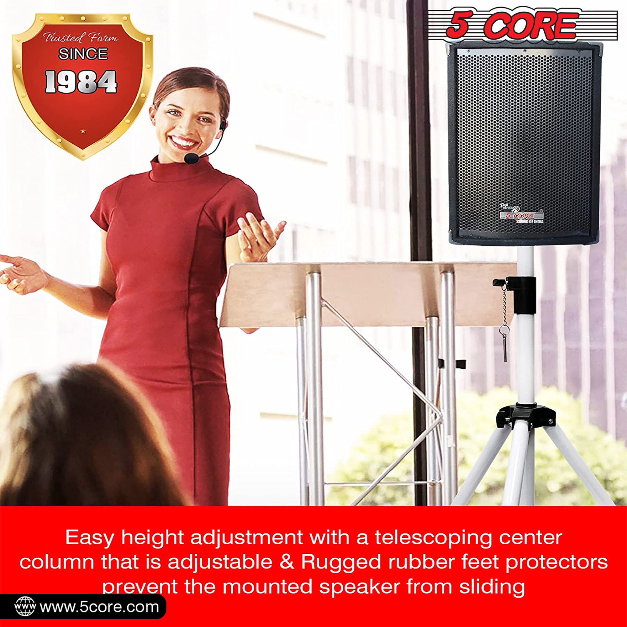 5 Core Speaker Stand Tripod Floor Heavy Duty Adjustable Up to 72 Inch DJ Studio Monitor Stands Pole Mount- SS HD WH BAG