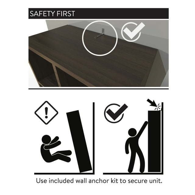 6-Cube Storage Organizers feature compartments that are perfectly sized for displaying books, collectibles, photography, artwork, and more. They are also compatible with collection of 10.5" x 10.5" collapsible storage bins (sold separately). The stylish design includes three open-back cube compartments that make managing cords easy, and three closed-back compartment to keep displayed items securely housed. The top panel and middle shelves can each support up to 22 pounds, and bottom panel can support up to 33 pounds. This easy to assemble storage shelf is available in multiple finishes to fit in with almost any decor. Add an accent piece that is as functional as it is fashionable to your living room, family room, den, home office, and more, with the 6-Cube Storage Organizer.