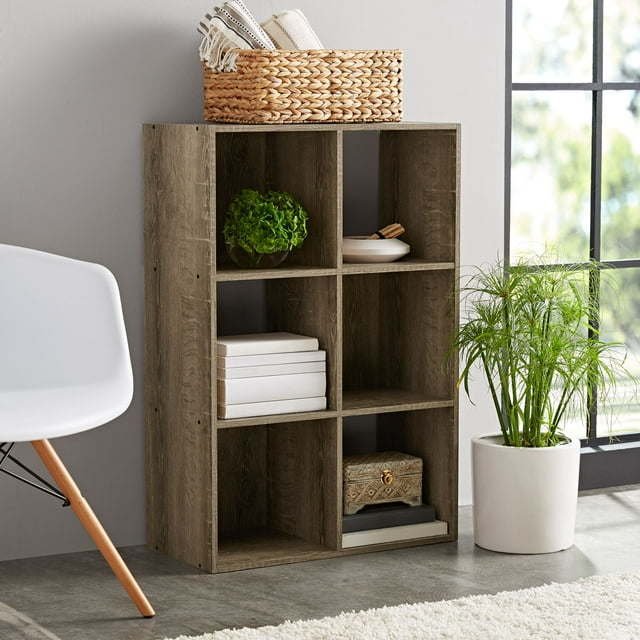 6-Cube Storage Organizers feature compartments that are perfectly sized for displaying books, collectibles, photography, artwork, and more. They are also compatible with collection of 10.5" x 10.5" collapsible storage bins (sold separately). The stylish design includes three open-back cube compartments that make managing cords easy, and three closed-back compartment to keep displayed items securely housed. The top panel and middle shelves can each support up to 22 pounds, and bottom panel can support up to 33 pounds. This easy to assemble storage shelf is available in multiple finishes to fit in with almost any decor. Add an accent piece that is as functional as it is fashionable to your living room, family room, den, home office, and more, with the 6-Cube Storage Organizer.