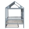 Full Size Wood House Bed With Twin Size Trundle, Wooden Daybed