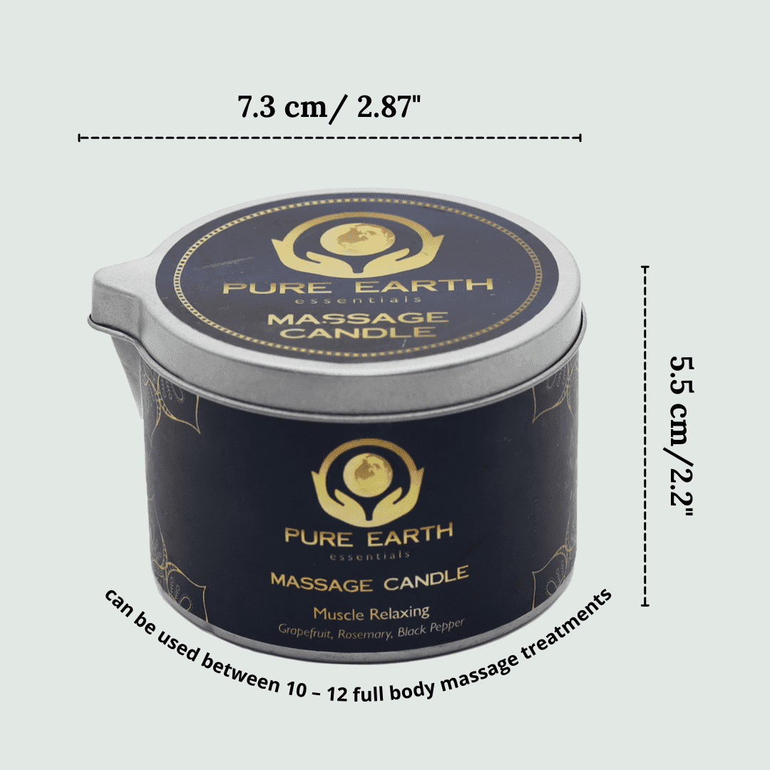 Set a romantic mood and zen environment to let you unwind at the end of a long day with pure earth essentials massage candles. ​​these body oil candles are perfect for any massage session, and it comes in 3 different scents (sensual, tranquility & muscle relaxing), so you can pick the one that suits your mood best. Our massage oil candle for couples and home spas helps penetrate deeper into the skin, making you feel calm, refreshed, and invigorated. This massage candle naturally burns at a low temperature so it will not harm the skin.