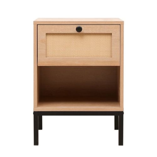 Home > Rattan Nightstand Set,Bedside Table with 1 Natural Rattan Drawers and Metal Legs