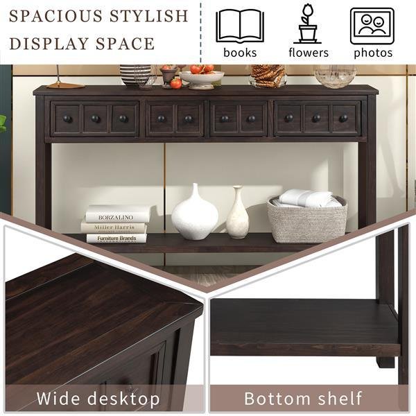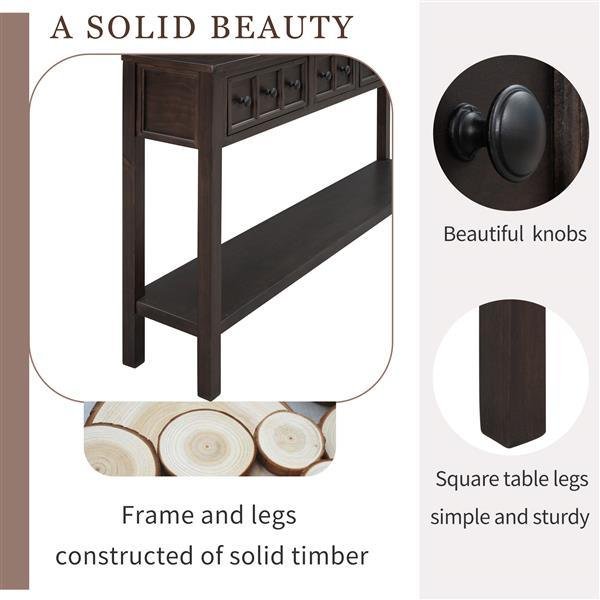 Twin over Full Bed with Sturdy Steel Frame, Bunk Bed with Twin Size Trundle, Two-Side Ladders, SilveThis metal bunk bed is made of high-quality steel which ensures long-lasting use. The full-length guardrails keep you safe from falling, bringing you full sense of security. For added convenience, the bunk bed comes with ladders on both side and the wheels attached to trundle can be locked, so the trundle can keep stable when you're using it. Featuring two twin size beds and one full size bed, this bunk bed offers you multiple choices. All accessories are available in the package, so you can assemble it in short time following the assembly instruction, perfect for your room.DescriptionMaterialMetalSizeTwin/FullColorSilverNumbers of package1Spring boxNo needAssembly RequiredYesOriginVietnamDimensionsOverall Product Dimension78.1''L*96.8''W*63''H(with trundle out)Package DimensionPlease refer to the SpecificationUpper Bed Size74.8'' x 38.9''Down Bed Size74.8'' x 53.9''Trundle Size70.8'' x 38.9''Number of Slats(each bed)21/21/19pcsOverall Product Weight108lbWeight Capability (Upper/Down/Trundle)250lb/350lb/250lbRecommend Mattress Thickness(Upper/Down/Trundle)6''/8-10''/6''Designed with a clean silhouette. It imbues any space with an atmosphere of class, and showcases the taste of it's owner. The desktop measures 6 * 11 inches (L * W), making it the perfect space-saver for any room-including hallways.This side console table features two small drawers and two bigger drawers, perfect for you to organize your necessities and accessories of all different sizes - such as remote controls, cables, keys or coffee cups. With smooth opening and closing, these drawers will keep the dust off, while also providing beautiful external decorations in the form of uniquely patterned knobs.A sleek and wide desktop, complemented with a clean and simple bottom shelf is great for displaying decorations such as paintings, photos, flowers and everything else you can think of. The perfect blend of storage and display means this piece has both style and functionality for all occasions and all spaces.With a frame and legs constructed of solid timber, and coated with a beautiful distressed finish, this occasional console table is reinforced in order to require low maintenance and be long-lasting and sturdy for a long time to come.This versatile and stylish piece is designed to provide customers with a hassle-free setup experience. Only the four legs and bottom shelf are in need of assembly. Anyone can begin enjoying this elegant and understated table in just a few minutes.
