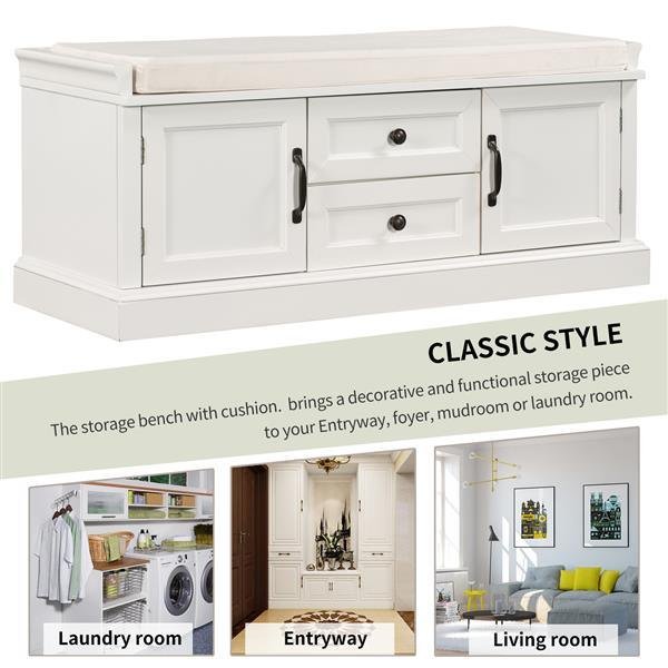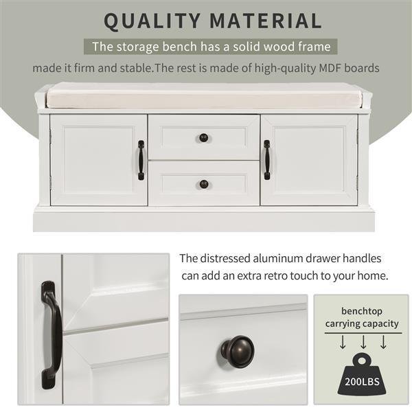 Storage Bench with 2 Drawers and 2 Cabinets, Shoe Bench with Removable Cushion for Living Room, Entryway (White) Storage Bench with 2 Drawers and 2 Cabinets, Shoe Bench with Removable Cushion for Living Room, Entryway (White) Storage Bench with 2 Drawers and 2 Cabinets, Shoe Bench with Removable Cushion for Living Room, Entryway (White) Storage Bench with 2 Drawers and 2 Cabinets, Shoe Bench with Removable Cushion for Living Room, Entryway (White) Storage Bench with 2 Drawers and 2 Cabinets, Shoe Bench with Removable Cushion for Living Room, Entryway (White) Storage Bench with 2 Drawers and 2 Cabinets, Shoe Bench with Removable Cushion for Living Room, Entryway (White) Storage Bench with 2 Drawers and 2 Cabinets, Shoe Bench with Removable Cushion for Living Room, Entryway (White) Storage Bench with 2 Drawers and 2 Cabinets, Shoe Bench with Removable Cushion for Living Room, Entryway (White) Storage Bench with 2 Drawers and 2 Cabinets, Shoe Bench with Removable Cushion for Living Room, Entryway (White)