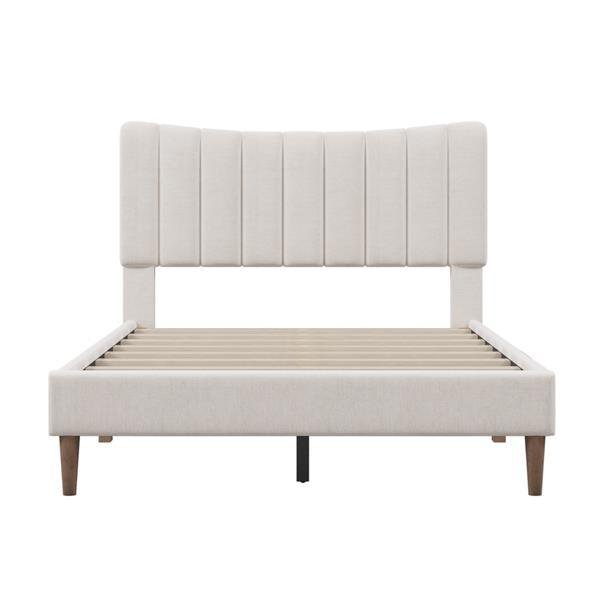 Upholstered Platform Bed Frame with Vertical Channel Tufted Headboard, No Box Spring Needed, Full, Cream