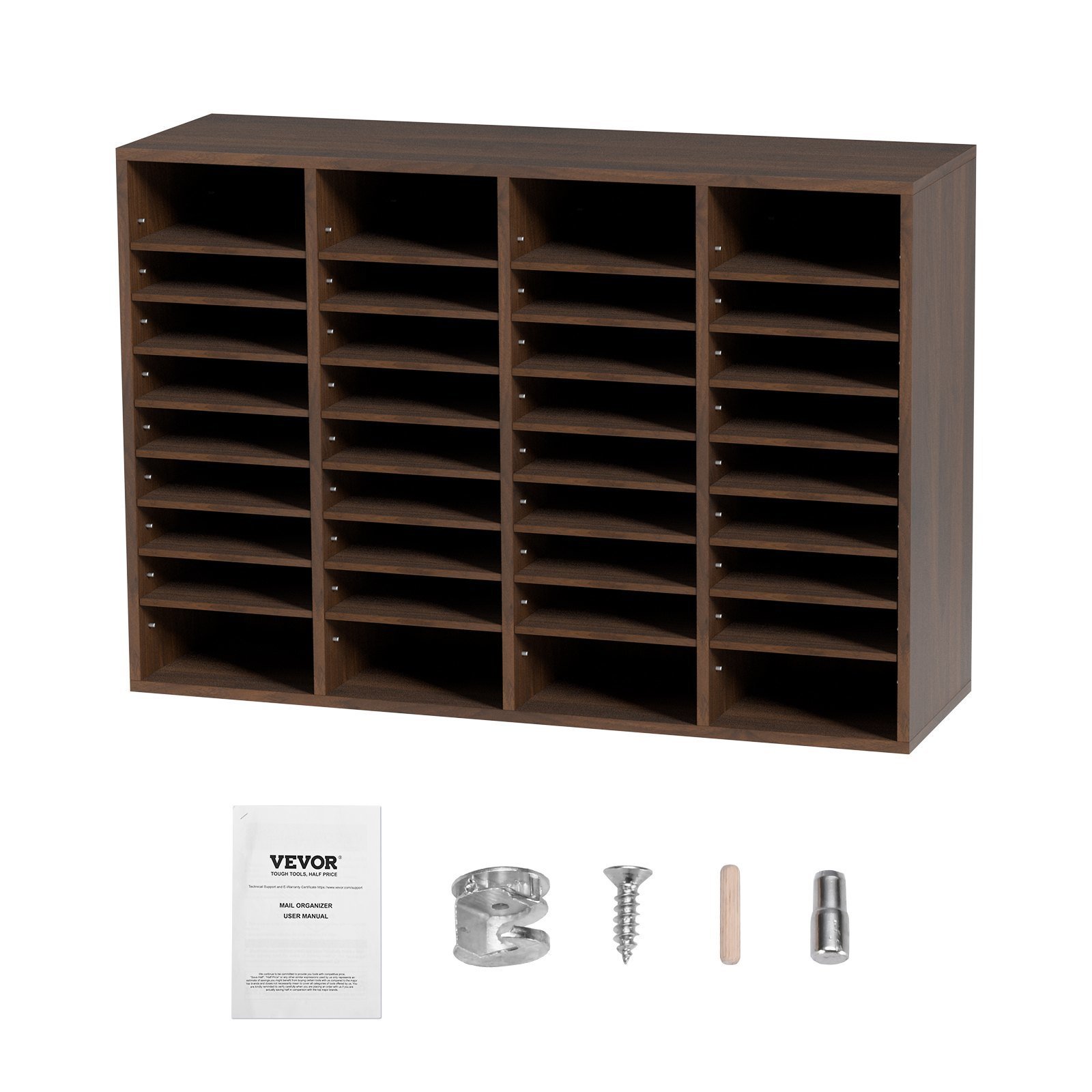 1.Maximize Your Space: Say goodbye to cluttered desktops with VEVOR 39.3''x12''x26.8'' wood literature organizer. It has 36 compartments in total, arranged in 9 rows and 4 columns. You'll have ample space to store and organize books, documents, magazines, papers, and other materials. Keep your workspace neat and tidy with ease.
