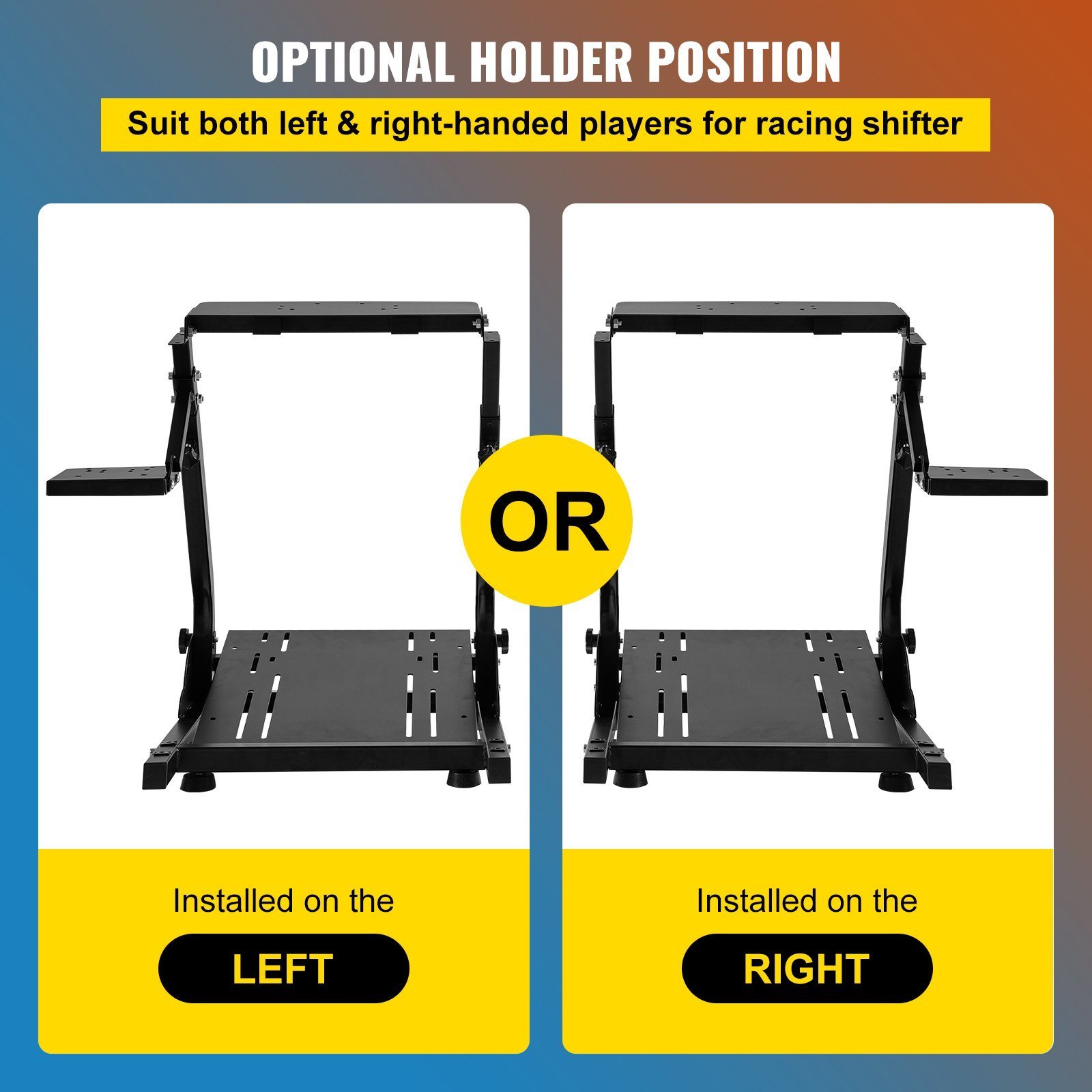 5.Optional Holder Position: Our gaming wheel stand is completed with a gear shifter holder, which can be switched to the left or right side as you like. The optional position is entirely suitable for both left-handed and right-handed players. Moreover, pre-drilled holes provide great help to mount the gear shift.