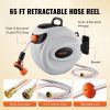 VEVOR Retractable Hose Reel Water Hose Reel 65'x5/8" 180° Swivel Wall-Mounted