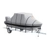 Tailored for boats (Length: up to 20 ft-22 ft; Beam width: up to 106 in), our boat cover is crafted from 600D marine-grade oxford fabric. Enhanced with a PU coating, it boasts 100% waterproof and resistance to sun exposure. The pressed waterproof tape in the cover ensures no water seeps through.
